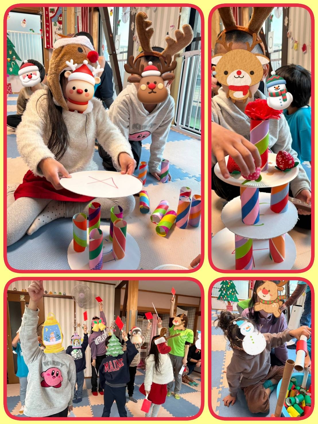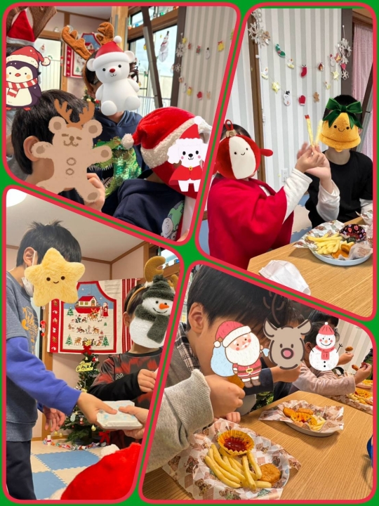 みんなでクリスマスゲームをした後におやつにはクリスマス限定でポテ・ナゲを提供させてもらいました!ポテト派・ナゲット派に分かれていてとても面白かったです(^-^)
